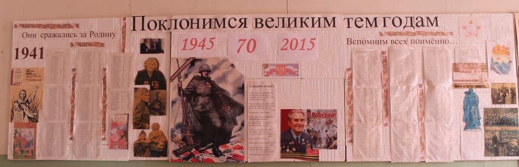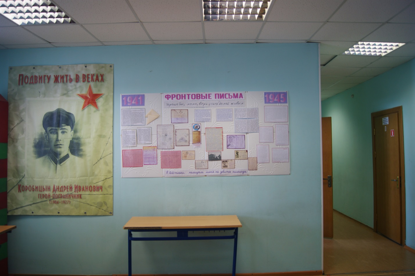 В Коробицынской школе основной объём стенда – фронтовые письма, тексты которых приведены полностью или выборочно. Отбирались письма с патриотической направленностью, в которых ярко отражены чувства солдат, их ненависть к врагу, любовь и преданность Родине и семье, готовность погибнуть за их свободу.