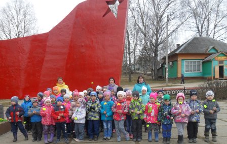 В целях патриотического воспитания дошкольников, 5 мая воспитатели с детьми средней, старшей и подготовительной групп Детского сада №1 провели беседы и интегрированные занятия на тему «Мы помним, мы не забудем». В этот день дети трех возрастных групп стали участниками познавательной гостиной, в рамках которой прошло мероприятие на тему «За Родину родную», организованное старшим воспитателем. По традиции все участники гостиной побывали у памятника в с. Сямжа, где возложили цветы воинам, которые защищали нашу страну от врагов, тем, кто отдал жизнь за наше мирное небо.