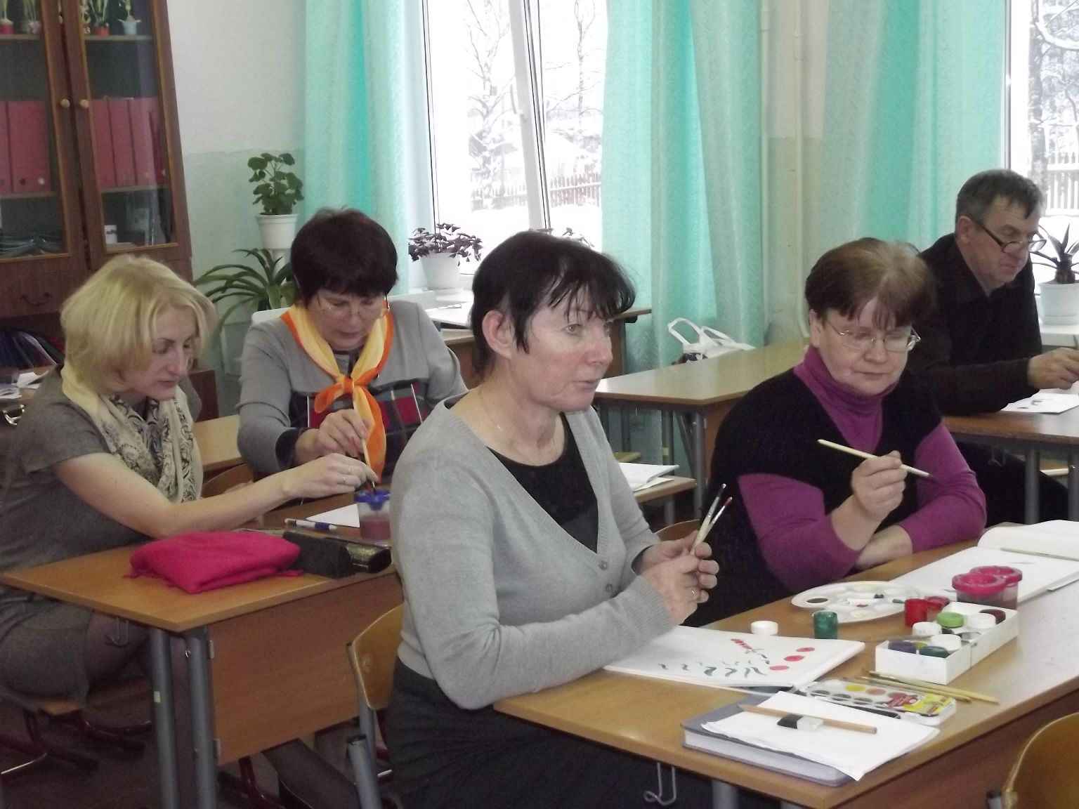 Во второй части семинара прошли практикум и мастер-класс по темам, которые вызывают наибольшее затруднение при изучении на уроках ИЗО: «Конструктивно-геометрическое построение предметов. Линия и штрих в тональном рисунке» (педагог дополнительного образования Зобнина С.Г.), «Традиционные северные росписи. Отработка приемов Вологодской свободно-кистевой росписи» (педагог дополнительного образования Шушлебина Е.Н.).
