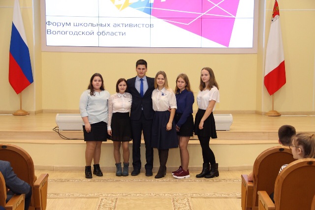 1-3 ноября 2019 года состоялся областной форум школьных активистов Вологодской области «Шаг в будущее», организованный Департаментом внутренней политики Правительства Вологодской области совместно с АУ ВО «Областным центром молодежных и гражданских инициатив «Содружество» и Вологодским региональным отделением Общероссийской общественно-государственной детско-юношеской организации «Российское движение школьников». В форуме приняли участие наши школьники Арина Вечеринина, Егор Бровкин (Сямженская школа), Лыжанова Юлия (Коробицынская школа), Косицына Люда (Режская школа), Баранова Ульяна, Труш Алина (Гремячинская школа). Открытие форума прошло в стенах правительства Вологодской области, где на VI съезде руководителей органов школьного ученического самоуправления заместитель Губернатора области Евгений Артёмович Богомазов и представители органов исполнительной власти области вручили выбранным руководителям органов ШУС отличительные значки «Школьное ученическое самоуправление Вологодской области» и удостоверения руководителей. Организаторы подготовили для участников форума насыщенную образовательную программу: деловые игры, зарядки, классные встречи, вечерние мероприятия, проектная деятельность, тренинги «ШУС от А до Я», «РДШ — здесь и сейчас», «Взаимодействие ШУС и РДШ», «Управленческие компетенции руководителя органа ШУС», «Говори завораживающе», «Рядом и навсегда», «SMM — двигатель прогресса» и многое другое. Каждый из ребят на форуме получил много знаний, почерпнул для себя много нового и интересного.