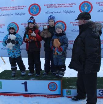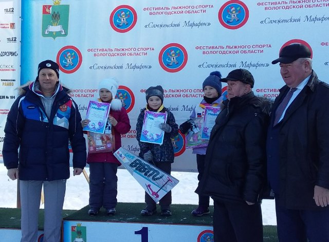 16 марта в рамках областного фестиваля лыжного спорта «Сямженский марафон» прошли районные лыжные соревнования среди дошкольных образовательных учреждений села Сямжа. В соревнованиях приняли участие более 40 юных спортсменов из трех детских садов. Все участники соревнований получили сладкие призы. Победители награждены грамотами, медалями и подарками. Призы, юным спортсменам, победителям соревнований, вручил начальник Департамента физической культуры и спорта Вологодской области, олимпийский чемпион по конькобежному спорту Сергей Ростиславович Фокичев. Четыре девочки и четыре мальчика, показавшие лучшие результаты, но не ставшие победителями, получили поощрительные призы от спонсора соревнований.