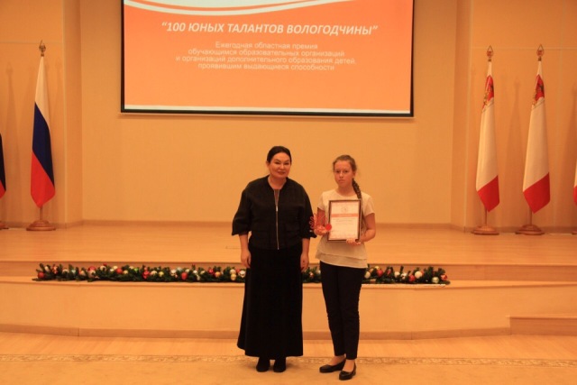 27 декабря в здании правительства Вологодской области прошла торжественная церемония вручения ежегодной областной премии «100 юных талантов Вологодчины». Четверо Сямженских школьников удостоены награды: Осокина Ксения, Игнашев Евгений, Батогова Виктория, Глазычева Александра. На церемонии награждения в Правительстве области присутствовала Ксения Осокина. Поздравляем!!!