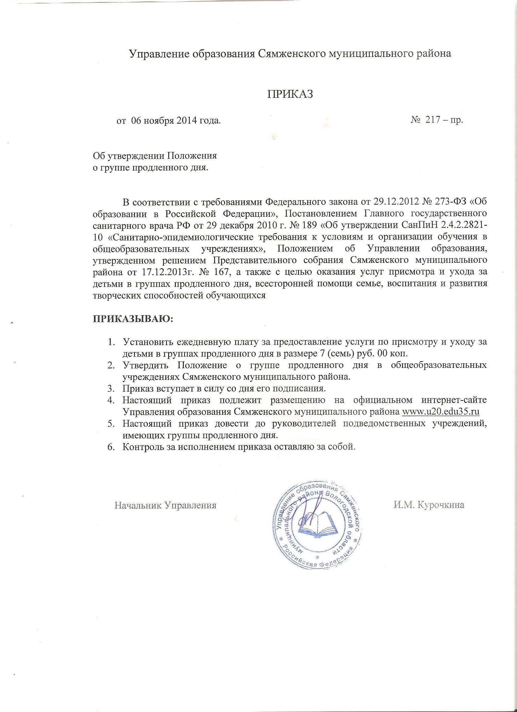 во вложении представлены документы, регламентирующие организацию групп продленного дня в общеобразовательных организациях района