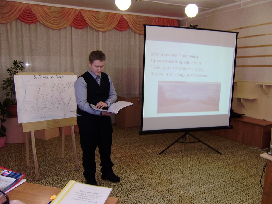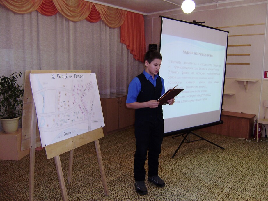 Егор Бровкин, учащийся 6в класса Сямженской школы, представил работу «История улицы Горка» (руководитель – В.И.Давыдова). В ходе своего исследования Егор выяснил интересные факты об истории улицы, составил план-схему деревни Горка, листы-истории для домов, куда внес фотографии, данные о прежних и нынешних жильцах, истории возникновения домов.