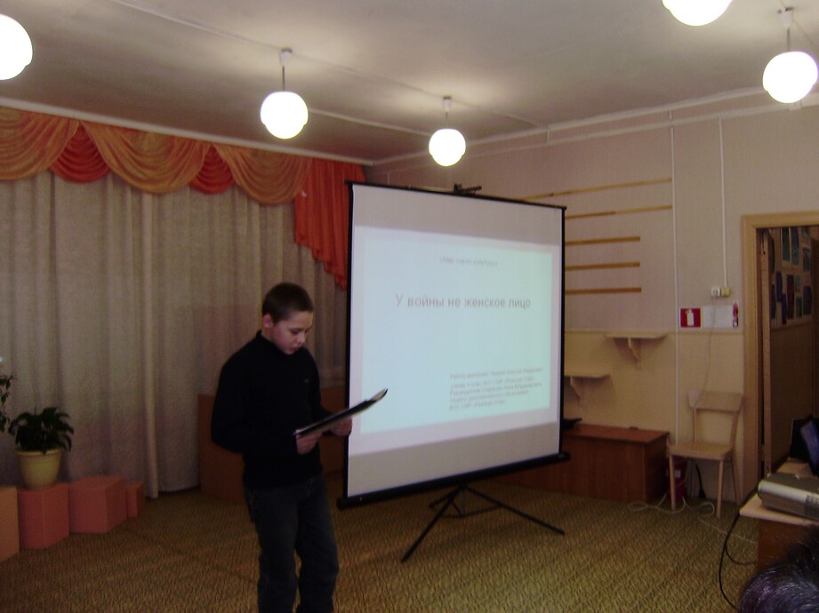 Маргарита Кулешова, ученица 7 класса Двиницкой школы (руководитель – Бутырин В.А), рассказала о жизни Сямженского района и Двиницы в годы Великой Отечественной войны, о фронтовом пути поэта Рюмина Павла Ивановича. Чешкин Алексей выступил с работой «У войны не женское лицо» (руководитель Старикова Н.В.), в которой собрал материал о женщинах - ветеранах Великой Отечественной войны. Игнашев Александр, ученик 9 класса Режской школы в своей работе «Игры и игрушки наших мам, пап, дедушек и бабушек» (руководитель Одинцова М.И.) систематизировал народные игры, продемонстрировал реквизит народных игр «лодыжки» и «чирога». О истории колхоза «Нива», его руководителях и труде колхозников рассказала Каштанова Ирина, ученица 8 класса Устьрецкой школы (руководитель Шабалдина Т.В.)